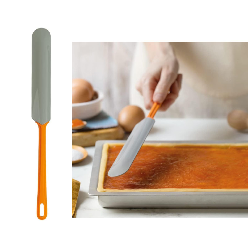Utensile da cucina in 100% Silicone Platinum*, con manico ergonomico in plastica. Indispensabile per amalgamare ogni tipo di preparazione, dolce o salata.