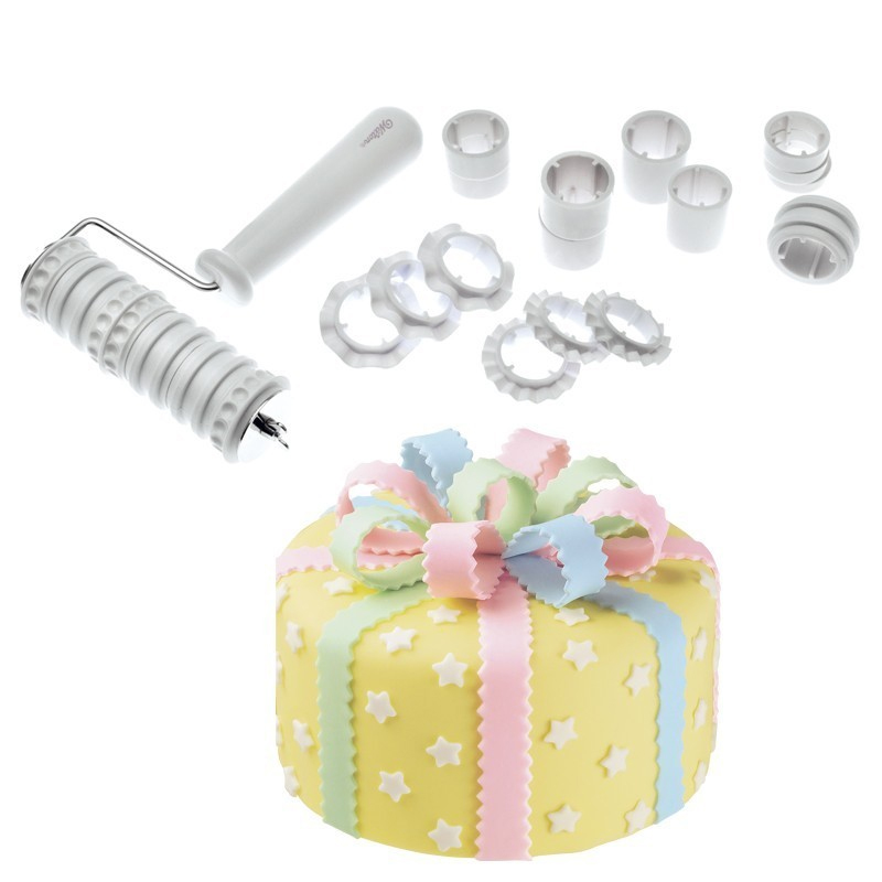 A fronte di una spesa minima, possiamo avere a portata di mano un accessorio molto utile, che servirà per decorare facilmente le nostre torte. Anche quando le nostre abilità miglioreranno e ci cimenteremo nella realizzazione di decorazioni più complesse, il rullo decorativo sarà sempre utile per permetterci di creare strisce di pasta perfette di diverse dimensioni. - l rullo decorativo è molto facile da usare. Basta svitare la farfalla che blocca la rondella metallica e far fuoriuscire i cilindri di plastica. Quindi possiamo comporre il rullo usando i distanziatori di diverse misure, e i cutter tagliapasta della forma desiderata (zig zag, a onda, o lisci).