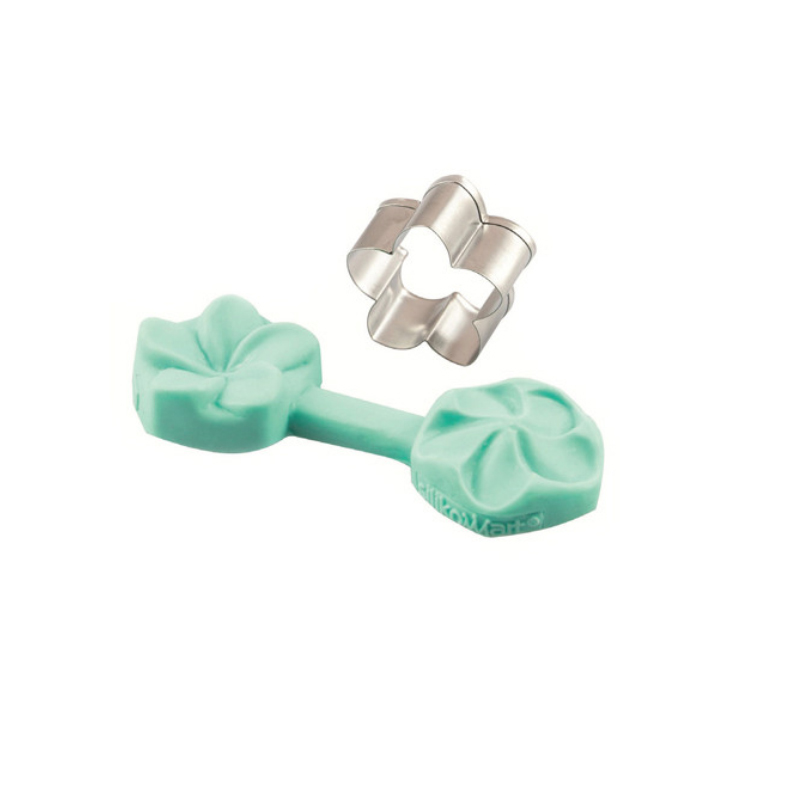 - Kit composto da uno stampo in silicone a forma di fiore e un taglia biscotti.