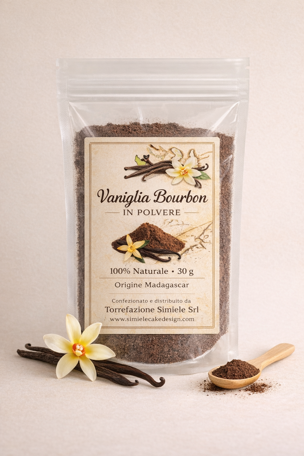 VANIGLIA BOURBON DA MADAGASCAR: La polvere di vaniglia è ottenuta da bacche di vaniglia Bourbon coltivate a Madagascar e macinate finemente.