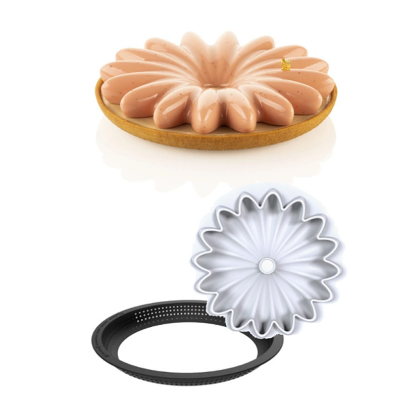 Questo elegante stampo in silicone per torta è perfetto per creare deliziose decorazioni floreali. Il kit da forno 3D Tarte Ring Bloom con diametro di 180 mm include uno stampo in silicone platinum e un anello TPlus+ 3D, che consente di preparare una base croccante di pasta frolla sulla quale adagiare lo stupendo top a forma di fiore realizzato con lo stampo. Grazie alle sue dimensioni generose di 180 mm di diametro e al volume di 300 ml, questo stampo permette di decorare torte, cupcake e dolci in modo originale con un raffinato motivo floreale che si adatta perfettamente all'anello. Realizzato in Italia con materiali di alta qualità, questo kit da forno garantisce risultati impeccabili adatti a deliziare i palati più esigenti.