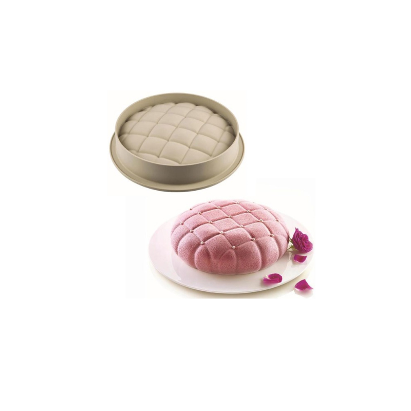 DESCRIZIONE per le vostre occasioni speciali affidatevi ad Eleganza, un portagioie del gusto dalla delicata trama trapuntata che vi permetterà di realizzare vere e proprie creazioni in 3D, che lasceranno senza fiato i vostri ospiti. Lo stampo è dotato di una rivoluzionaria bordatura interna che conferisce una leggera forma arrotondata alla base delle vostre preparazioni. Eleganza garantisce risultati impeccabili non solo in versione semifreddo e mousse, ma anche in versione cotta.