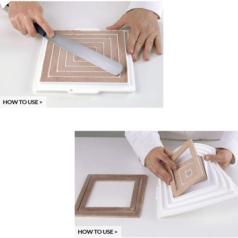 Con INSERT DECOR SQUARE è possibile creare decorazioni o inserti di 12 misure diverse, 6 per ogni lato dello stampo, da utilizzare sulla superficie o all'interno delle preparazioni. ideale per gelati, zucchero, cioccolato, e prodotti da forno. Dimensioni: 40/260 h 10mm Per creazioni da 40x40 a 260x260 passo 20 mm