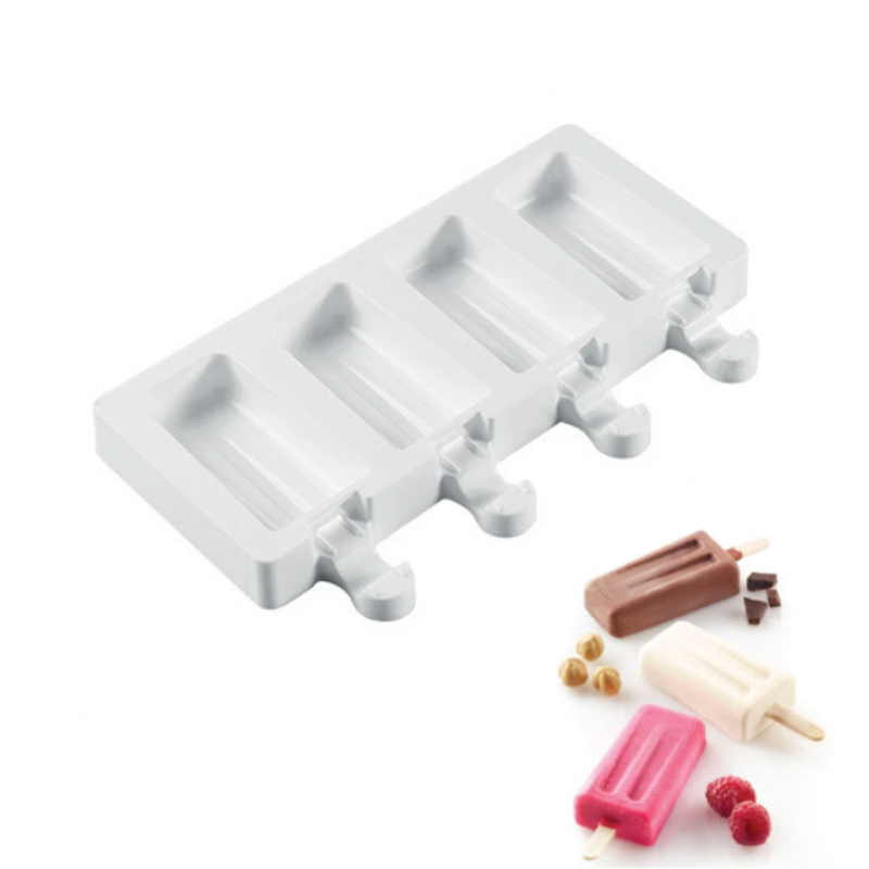 Un set per realizzare 4 mini gelati o ghiaccioli in casa utilizzando un dispositivo da professionisti. In dotazione anche gli stecchi in legno. In silicone alimentare. Lo stampo vintage riprende la sagoma tipica dei ghiaccioli anni '70