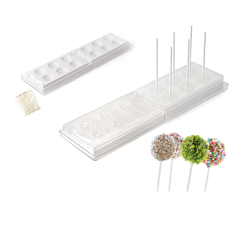 Lo Stampo Sfera Cake Pops in silicone con Vassoio e Bastoncini 28 mm è un kit composto da: