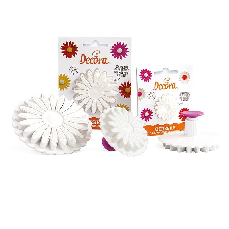 Realizzati in materiale plastico adatto al contatto con alimenti. Creati per realizzare meravigliosi fiori in pasta di gomma e in pasta di zucchero. Oltre a tagliare la pasta di gomma nella forma della gerbera, lo stampo consente di imprimere sulla superficie le venature ed i dettagli dei fiori.