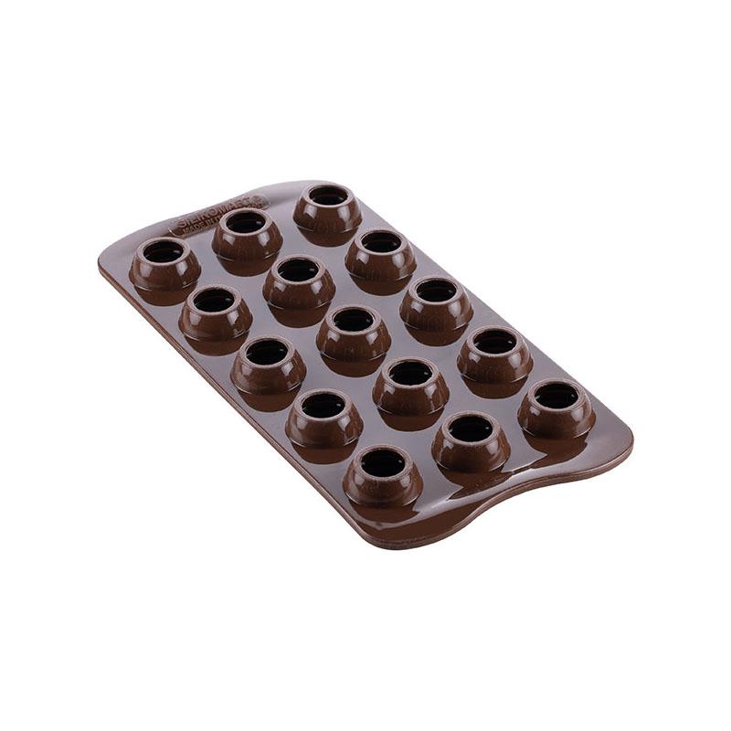 STAMPO IN SILICONE PER CIOCCOLATINI 3D Piccole dolcezze al cioccolato che vi sorprenderanno per la loro forma originale e in 3D! Il cioccolato non avrà più limiti grazie a Silikomart: ciascuna cavità dello stampo è infatti provvista di una speciale bordatura interna che conferisce una leggera forma arrotondata alla base delle vostre creazioni. Piccole delizie raffinate al palato e alla vista!