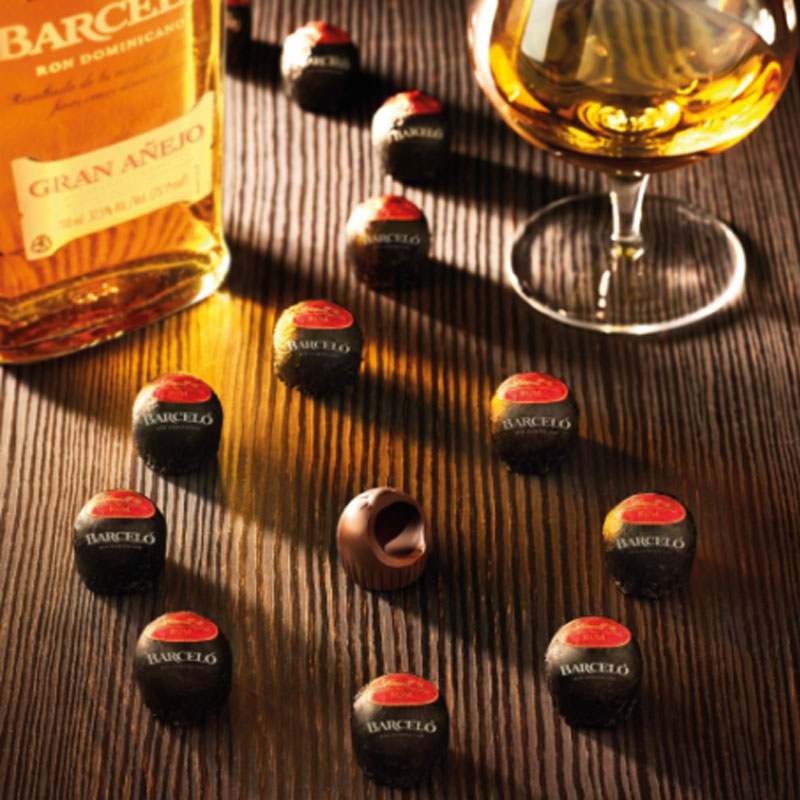 Il gusto deciso e intenso del nostro finissimo cioccolato Lindt si sposa con le note alcoliche della Ron Barcelò. Le Praline Ron Barcelò hannio un guscio di finissimo cioccolato fondente avvolge al suo interno tutta la purezza del rum Ron Barcelò. La pralina dal cuore pieno di passione. Le nostre praline alcoliche sono perfette per ogni fine pasto o per un dolce momento in compagnia delle tue persone speciali.