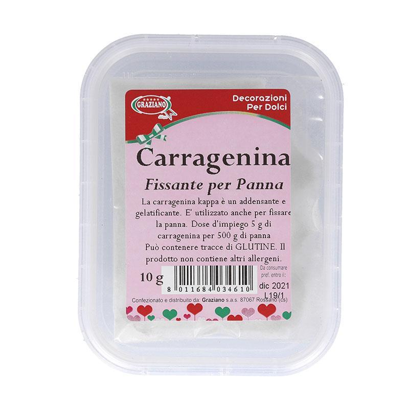 La carragenina è un addensante e gelatificante, estratto dalle alghe rosse Rhodophyllaceae. E' utilizzata anche come fissante per panna.